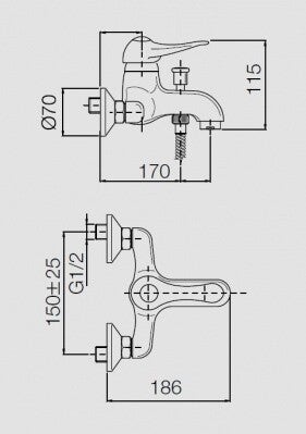 Bath faucet Nice Archimede • Classic style • Fixed spout with aerator • Lever control • Ceramic cartridge Scope of delivery: Mixer, shower head, 150 cm hose, eccentrics, reflectors
